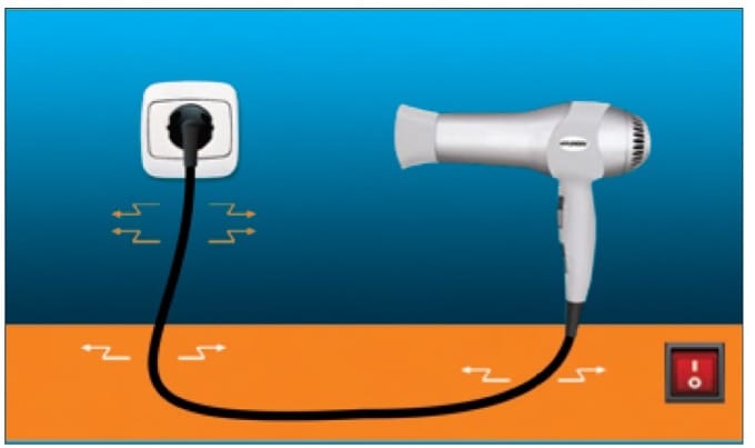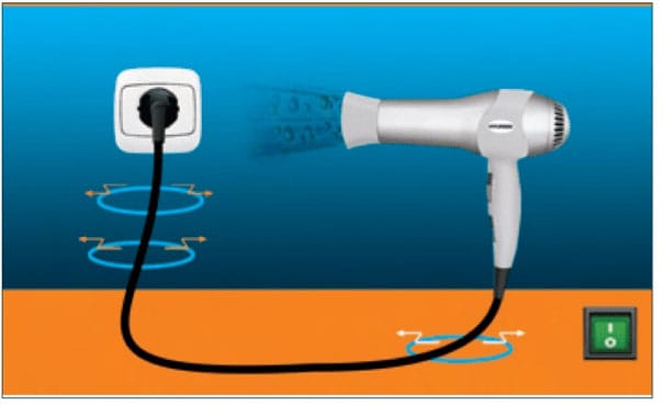 Ko električno napravo priključimo na elektriko, nastane v njeni okolici električno polje. Čim večja je napetost, tem močnejše je električno polje na dani razdalji od naprave. Ker lahko napetost obstaja tudi tedaj, ko tok ne teče, za obstoj električnega polja ni potrebno, da naprava deluje.
